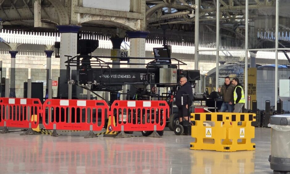 Equipment and actors can be seen in the atrium this morning.