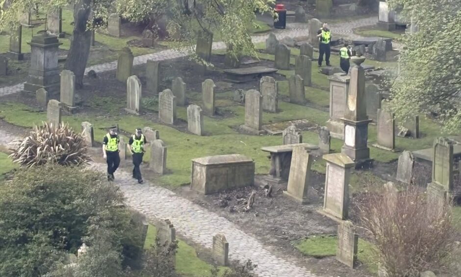 At least 10 officers were seen entering the graveyard.